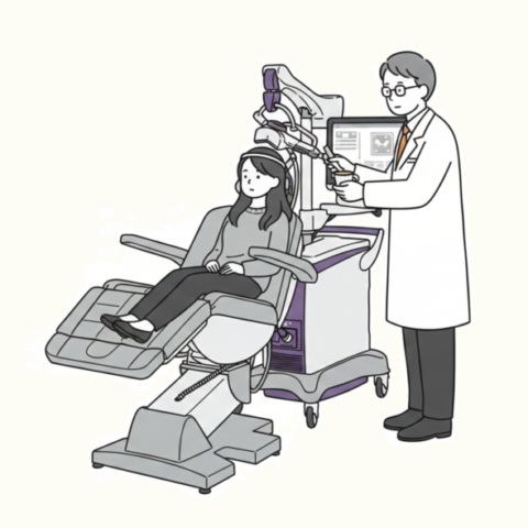 当院で初診を行い、診察、治療内容の説明、同意の確認、必要な検査等を通して、rTMS療法の適応について判断します。